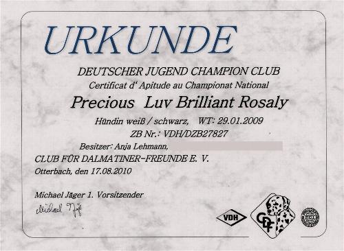 Rosaly ist deutscher Jugendchampion Club!!!!