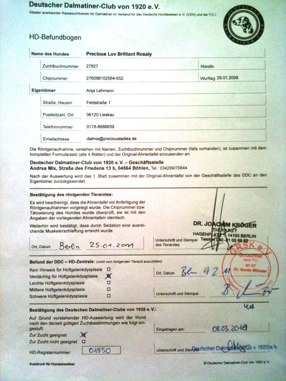 "Precious Luv Brilliant Rosaly" VDH/DZB 27827* 29.01.2009Gehör bilateral | vollzahnig | 58,5 cm | Zuchtzulassung seit 2010/2011HD - B - Dokument | lemonfrei E/E | mischerbig B/b - DokumentTitel:"Deutscher Jugendchampion Club" | "Siegerin Annaberg - Buchholz 2010"Ahnentafel:
